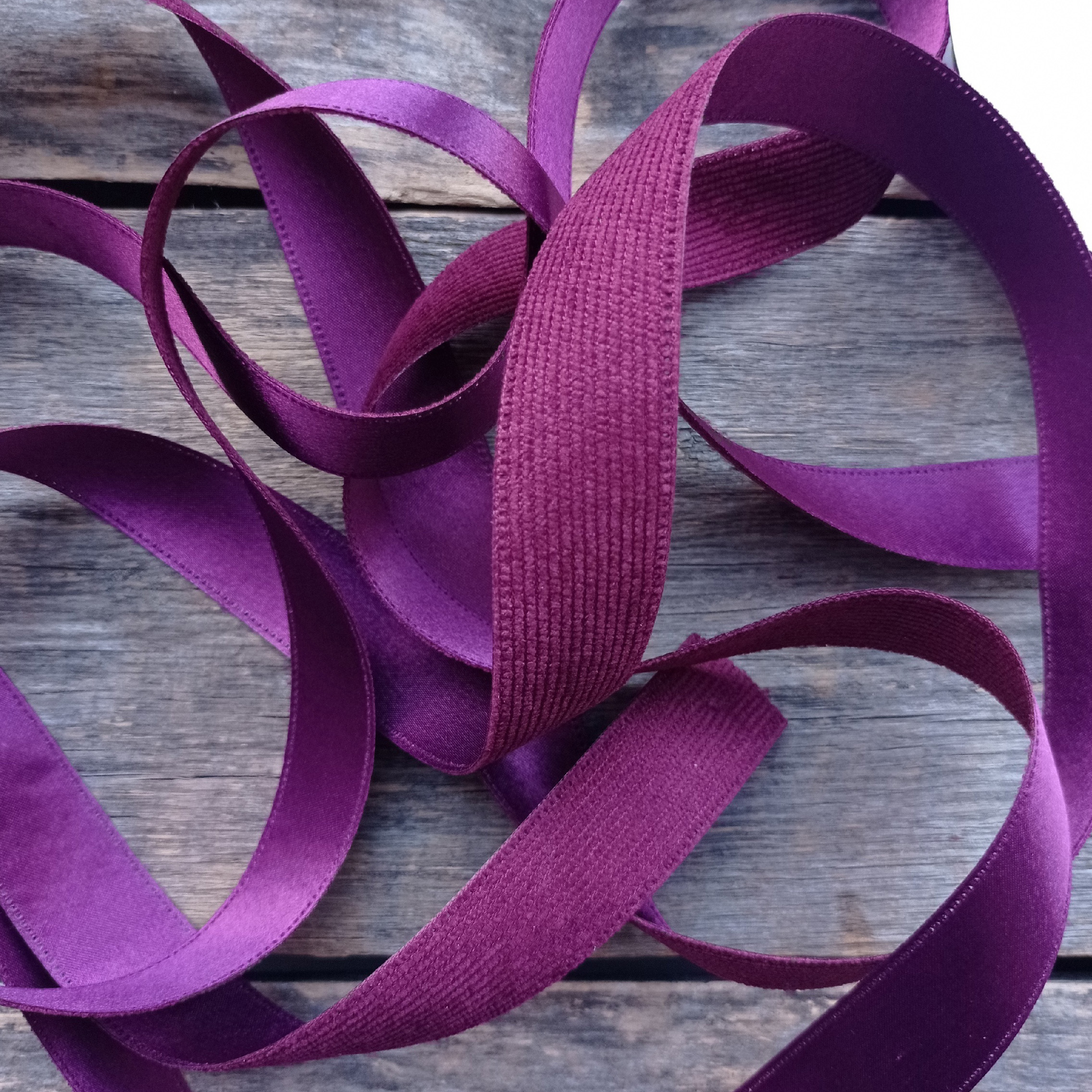 Ширина 25 мм, цена за 1 метр. С одной стороны вельвет, с другой стороны атлас. Очень красиво смотрится в завязках и слоях.