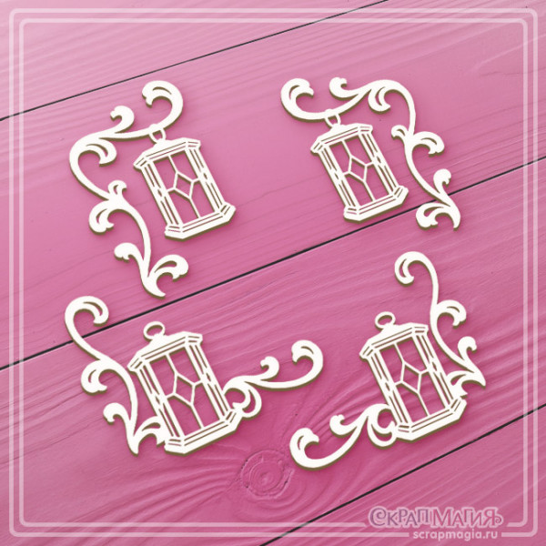 Чипборд Скрапмагия "Завитки и уголки с фонариками" 4 эл