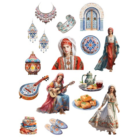 Высечки из ткани на фетровой основе. Набор из 16 элементов. Толщина 1 мм.