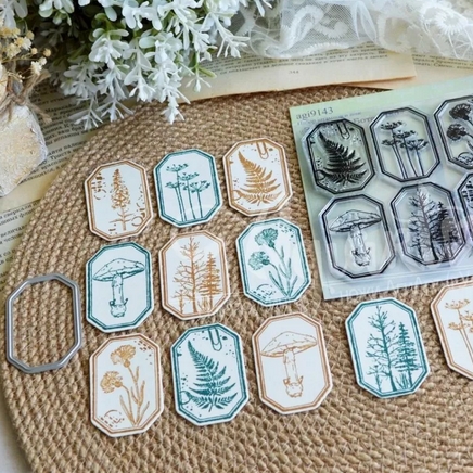 Набор штампов + нож Agiart "Этикетки. Ботаника"