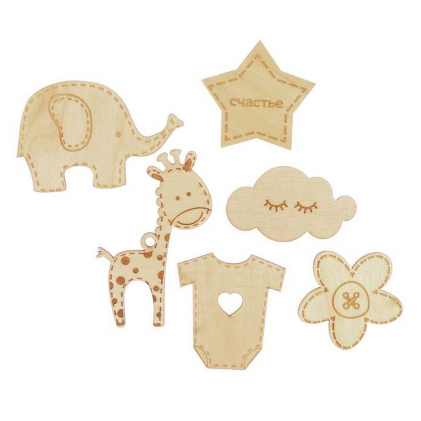 Декоративные вырубные элементы предназначены для украшения открытки, подарка и воплощения других творческих идей. Вы можете покрасить их красками или глиттером, обклеить бумагой для скрапбукинга или тканью, применить техники эмбоссинг, штампинг или оставить как есть. В набор входят 6 элементов.