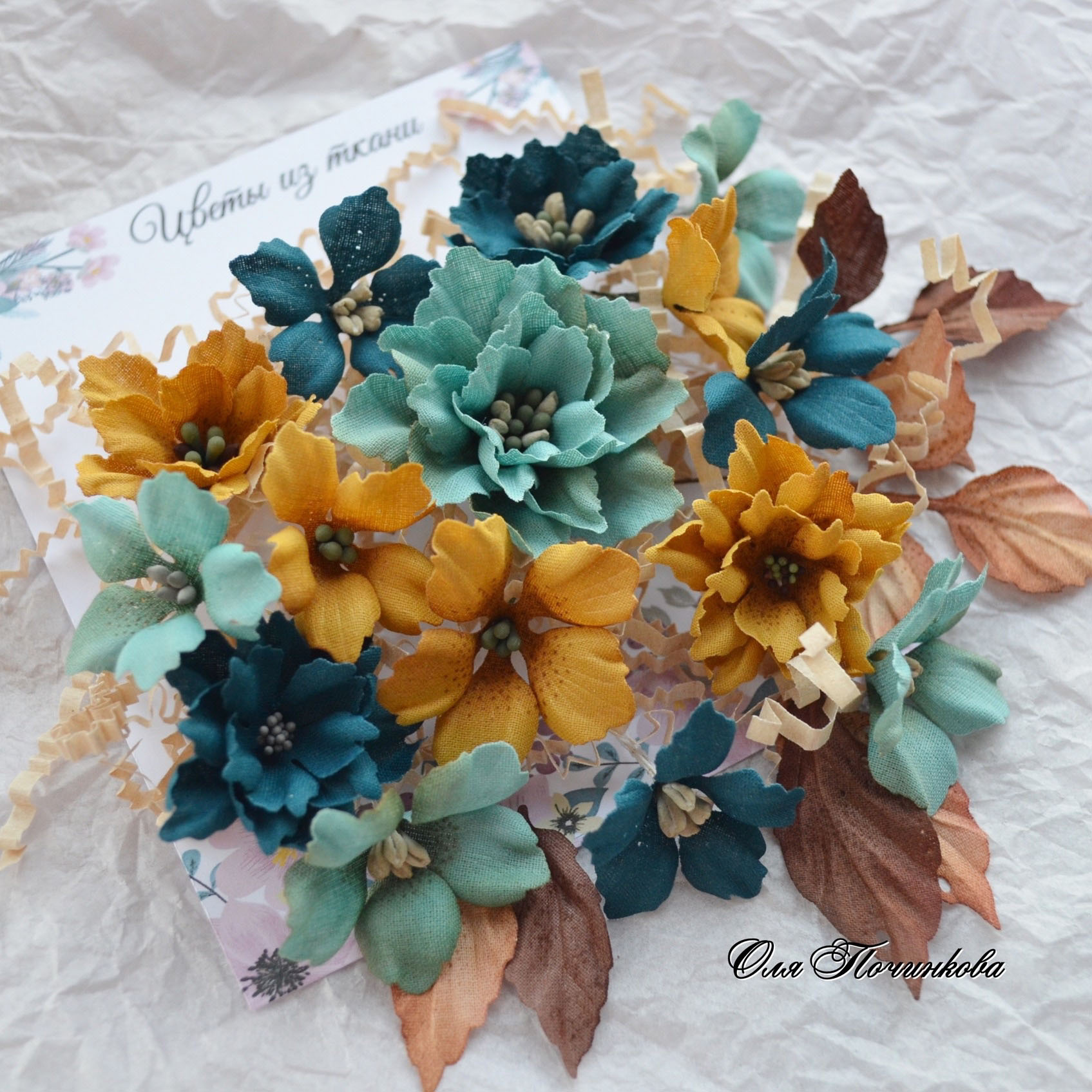 Цветы из ткани от Оли Починковой "Изумрудная осень"