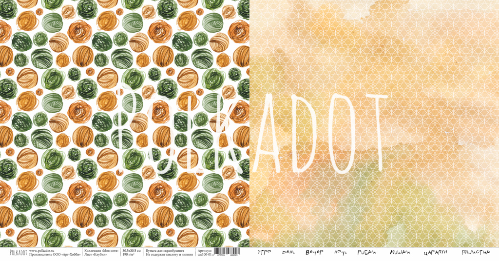 Бумага Polkadot. Коллекция "Моя котя" Клубки (PKD-225-1)