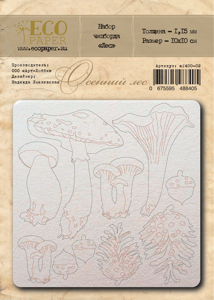 Размер листа с вырубкой около 10х10см. Толщина 1,15см. Размер самого большого гриба около 7х4,5см. Предназначен для украшения и декорирования альбомомв и открыток в скрапбукинге. Можно использовать как не обработанным, так и окрашивать в любые цвета с помощью красок, спреев, паст и пр.