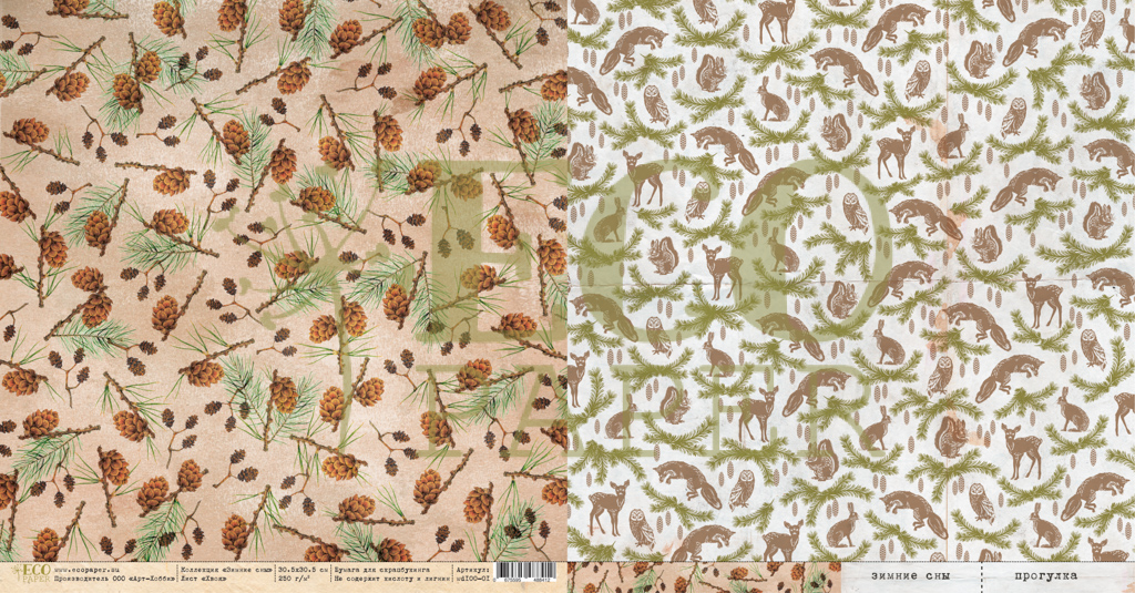 Бумага для скрапбукинга Eco paper "Зимние сны" Хвоя (ECO41)