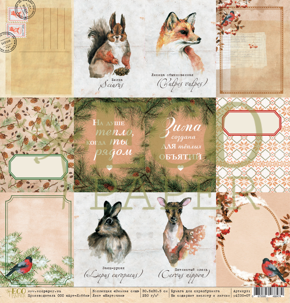 Бумага для скрапбукинга Eco paper "Зимние сны" Карточки (ECO47)