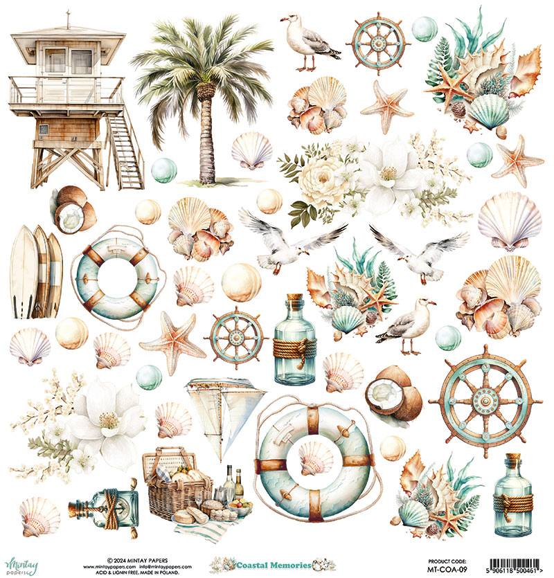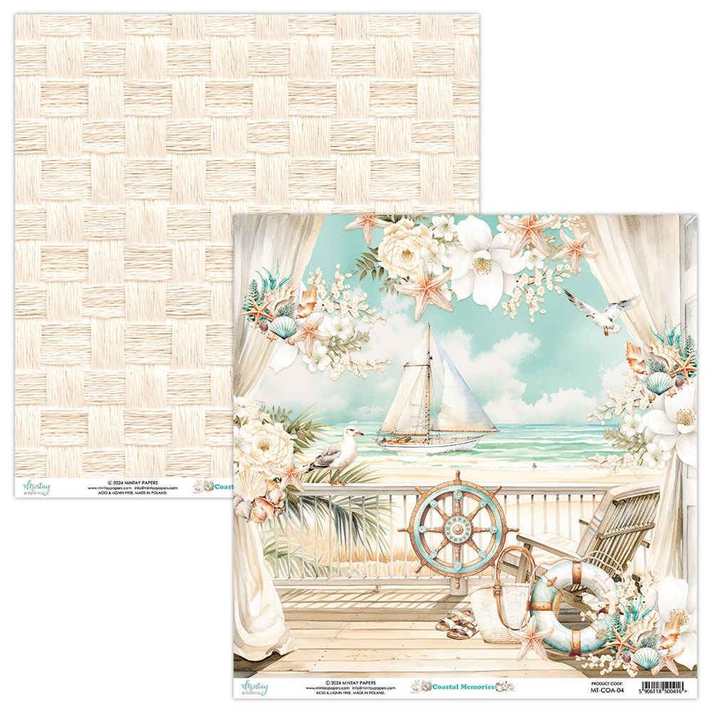 ПОЛНЫЙ Набор бумаги (12 листов + бонус) 30,5 х 30,5см Mintay papers "Coastal Memories"