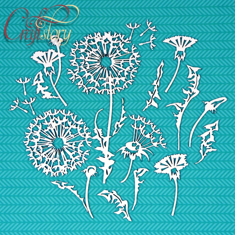 оличество элементов как на фото. Размер большего одуванчика на стебле 11,8 х 5,8 см. Чипборд изготовлен из пивного картона толщиной 1,15 мм.
