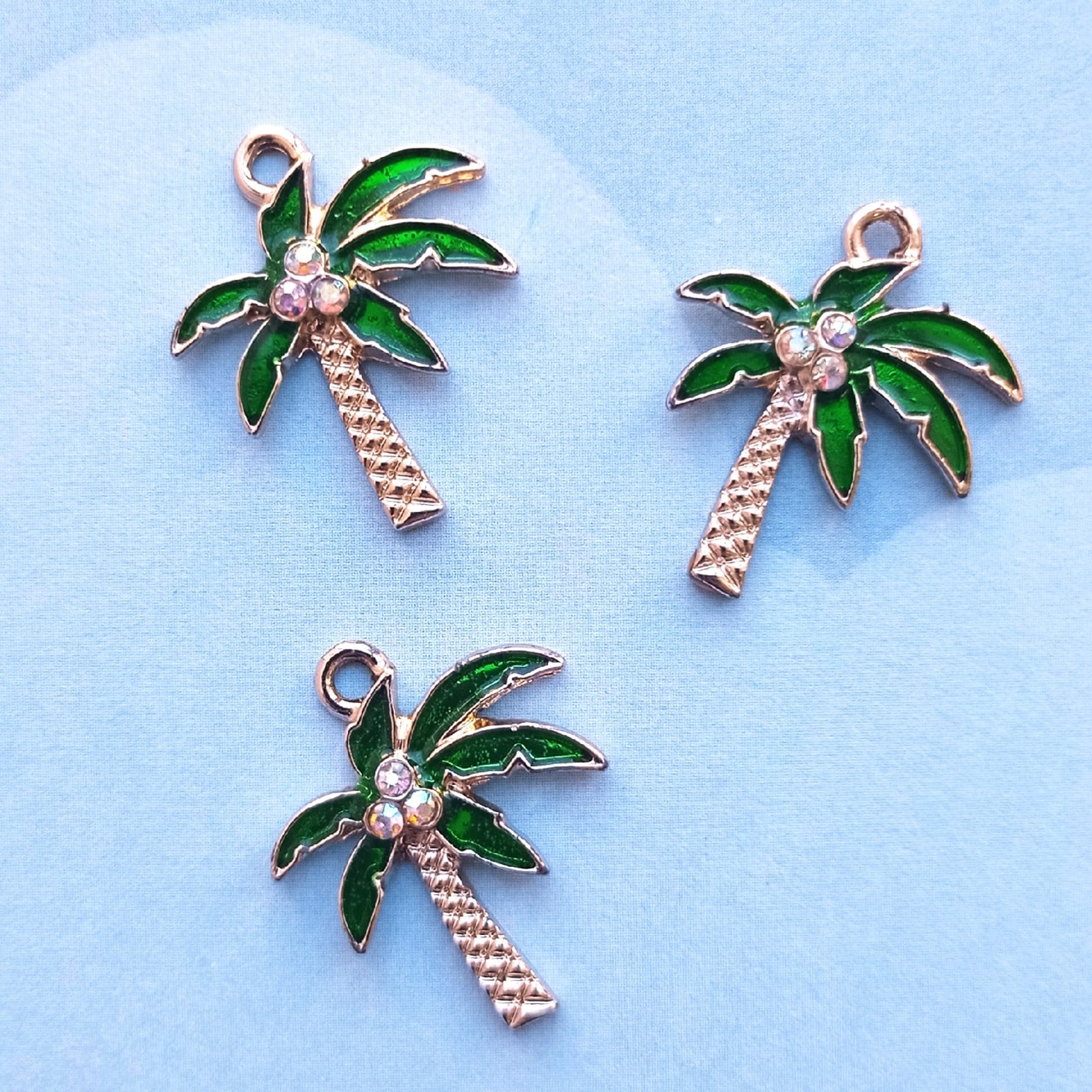 Подвеска металлическая металл, эмаль, стразы "Пальма", золото