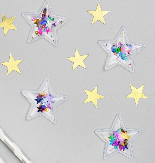 Украшение прозрачное "Звезда" с наполнением цветные пайетки (868)