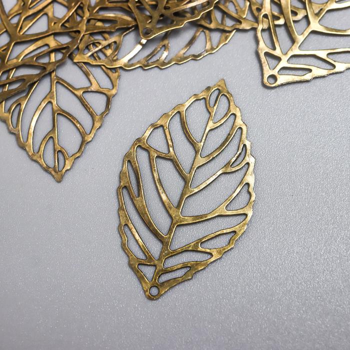 Подвеска металлическая "Листик скелетированный" Бронза (298)