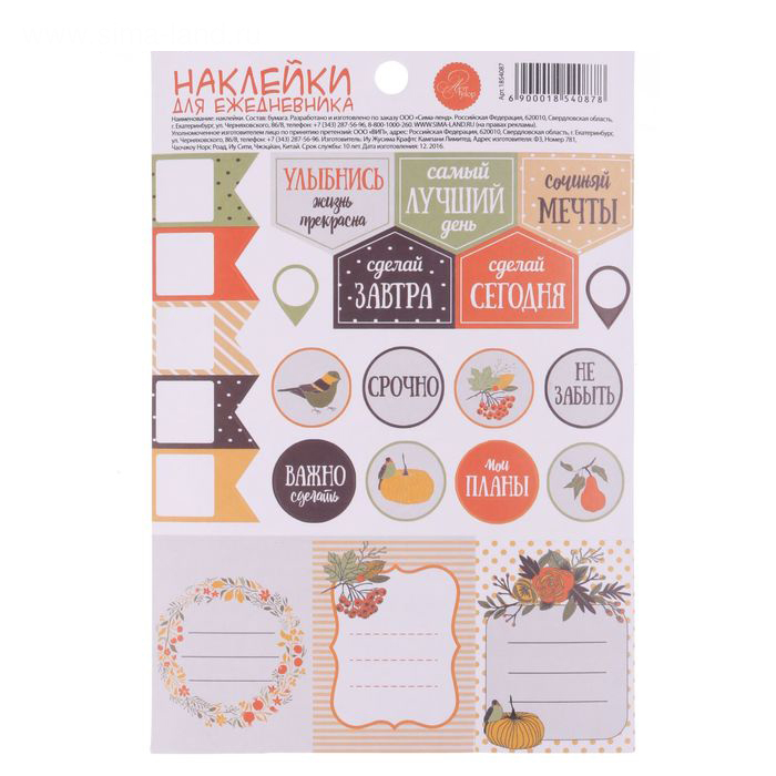 Наклейки бумажные для ежедневника Артузор "Планы на осень"