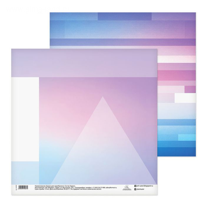 Бумага для скрапбукинга двусторонняя. Размер 30,5 х 30,5 см. Плотность 180 г\м2. Внимание! Реальная длина одной из 2-х сторон 28,5 см за счёт отрезной полосы со штрихкодом.