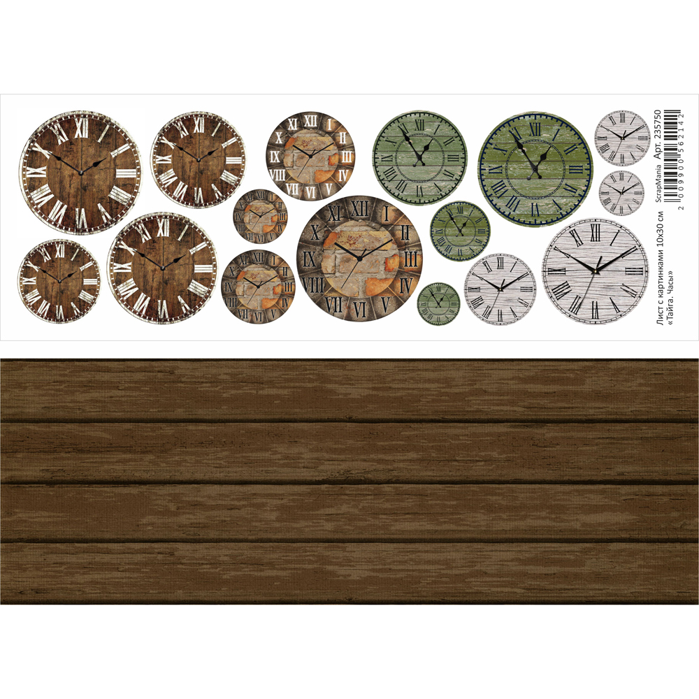 Бумага 10х30 см ScrapMania "Тайга" Часы (SMA229)