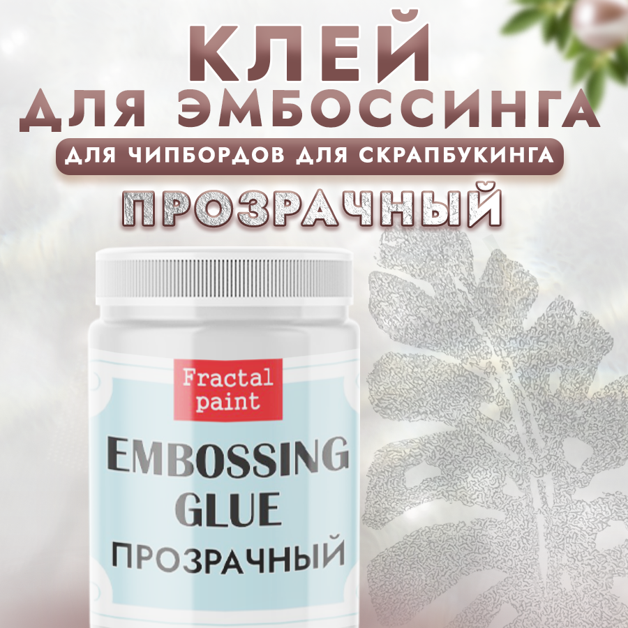 Баночка 50мл. Специальный состав, с помощью которого насыпанная поверх пудра для эмбоссинга задержится на основе. Не подходит для наполнения подушечки для эмбоссирования, а наносится кистью на поверхность.Процесс применения клея и пудры для эмбоссинга следующий: нанесите клей для эмбоссинга на поверхность чипборда, скрап-вырубки или нарисуйте кистью на поверхности задуманный рисунок, затем нанесите пудру для эмбоссинга, пудра останется только там, где был нанесен клей, излишки пудры стряхните обратно в баночку. После этого, нагрейте полученный оттиск феном для горячего эмбоссинга, пока пудра полностью не расплавится. В результате этого процесса вы получите объемное изображение с эффектом эмбоссинга.