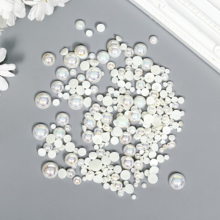 Половинки бусин Кремовый перламутр 3-10мм