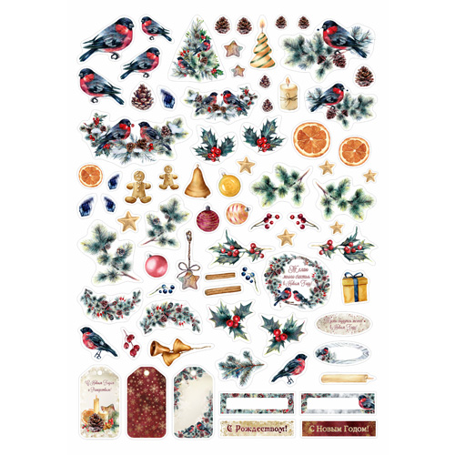 В наборе 77 высечек из очень плотной бумаги, размер от 1,4х1,6 см до 5,2х11,4 см. Плотность 300 гр/м2.