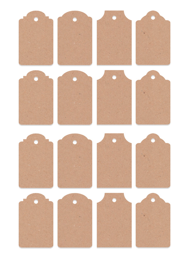 В наборе бирочки - 4 формы, по 4 шт. Всего 16 бирочек. Размер около 4 х 7 см