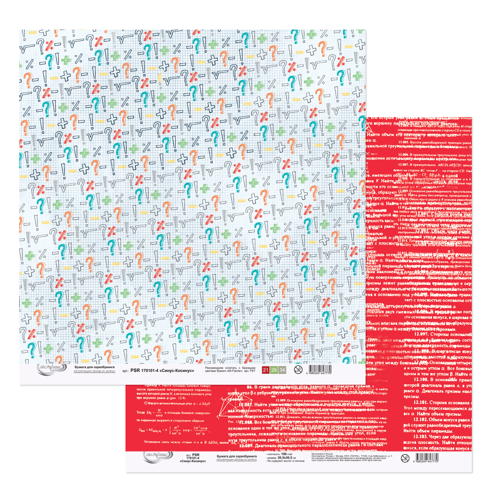 Бумага для скрапбукинга MrPainter "Синус-косинус" (PSR 170101-4)
