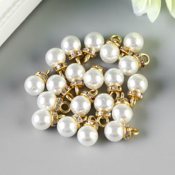 Подвеска пластик "Белая жемчужинка со стразами" золотая петелька (897)