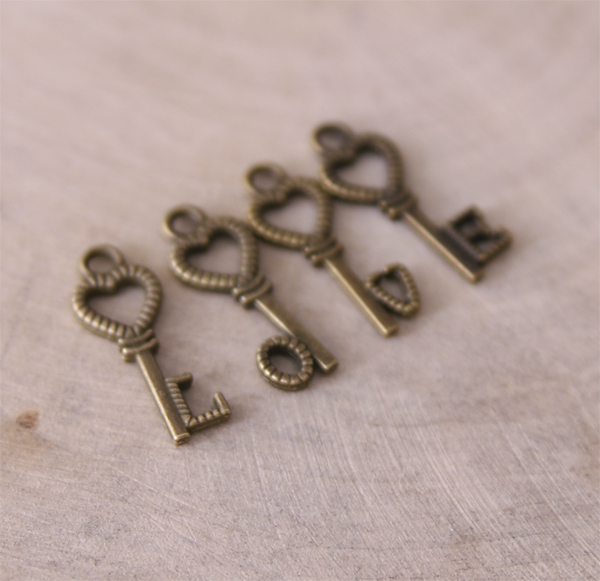 Размер каждого ключика 1 см × 2 см. В наборе 4 штуки, образующие вместе слово LOVE