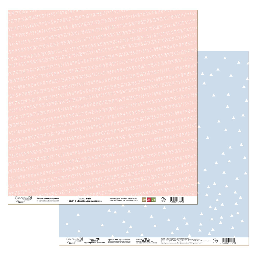 Бумага для скрапбукинга MrPainter "Декабрьский дневник" (PSR 160801-5)