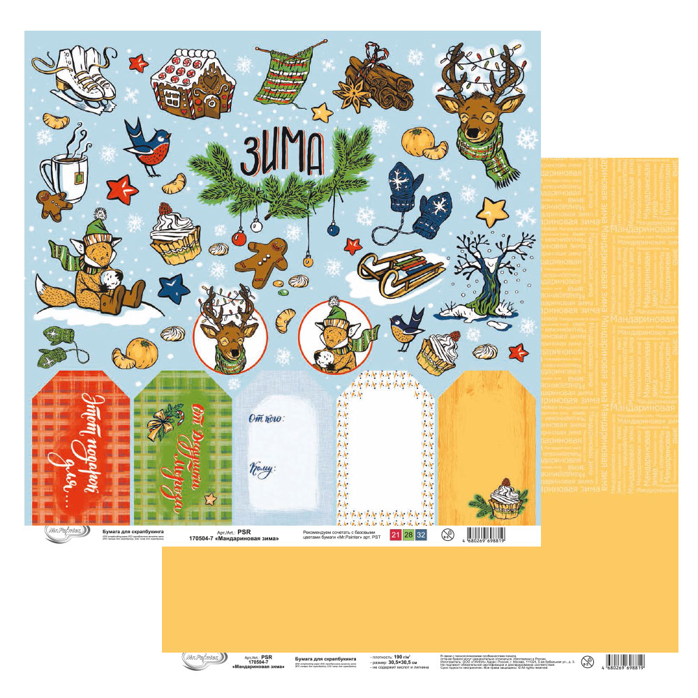 Бумага для скрапбукинга MrPainter "Мандариновая зима" (PSR 170504-7)