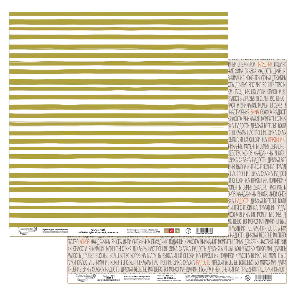 Бумага для скрапбукинга MrPainter "Декабрьский дневник" (PSR 160801-4)