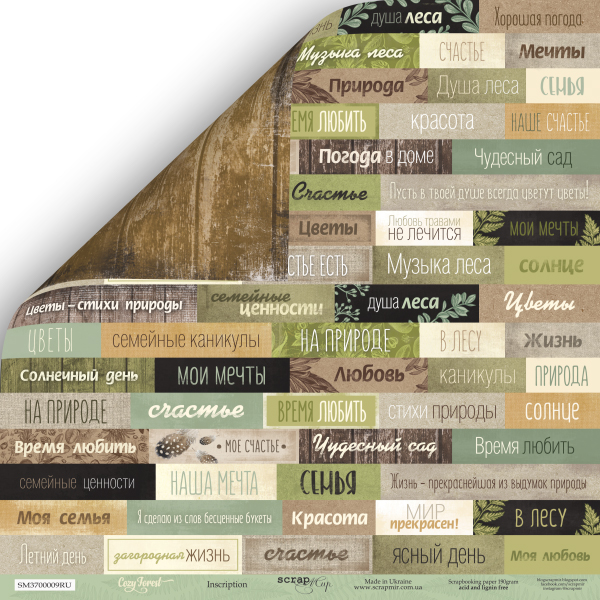 Бумага Scrapмир "Cozy Forest", Надписи (RU) (SM303)