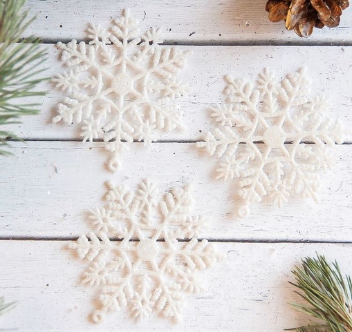 3 штуки, диаметр 7 см. Выполнены из пластика, декорированы блёстками