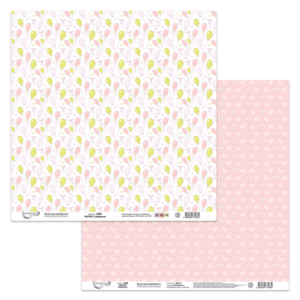 Бумага для скрапбукинга MrPainter "Зефирки" (PSR-180108-2)