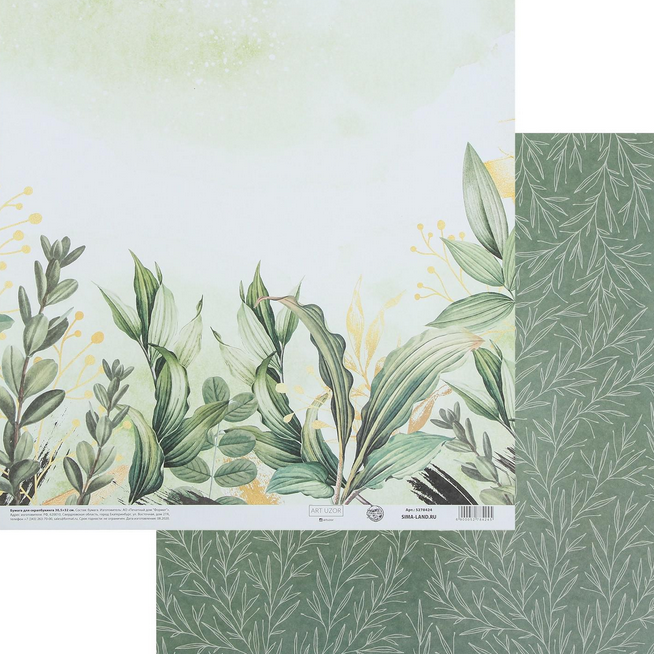 Бумага для скрапбукинга АртУзор "Зелень" (ART836)
