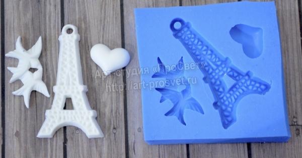 Молды (формочки) силиконовые. Размер башни 4,5х2,5 см. Сердце 1,5х2 см. Используются с глиной, жидким пластиком и тд для получения объёмных декоративных фигурок.