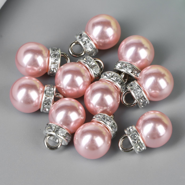 Подвеска пластик "Розовая жемчужинка со стразами" серебряная петелька (894)