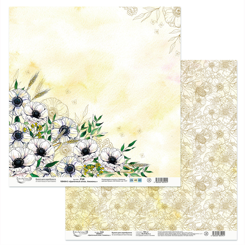 Бумага для скрапбукинга MrPainter "Цветочный атлас. Анемоны" (PSR180404-3)