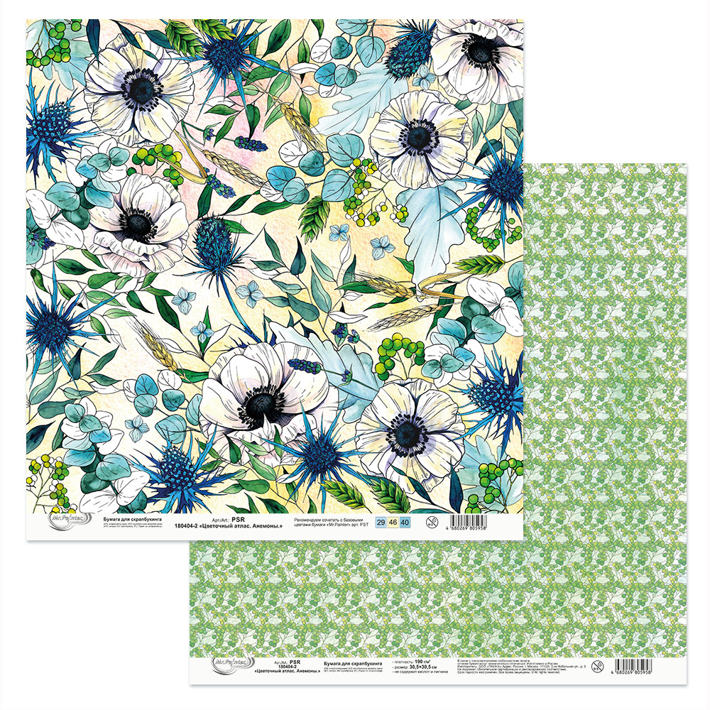 Бумага для скрапбукинга MrPainter "Цветочный атлас. Анемоны" (PSR180404-2)
