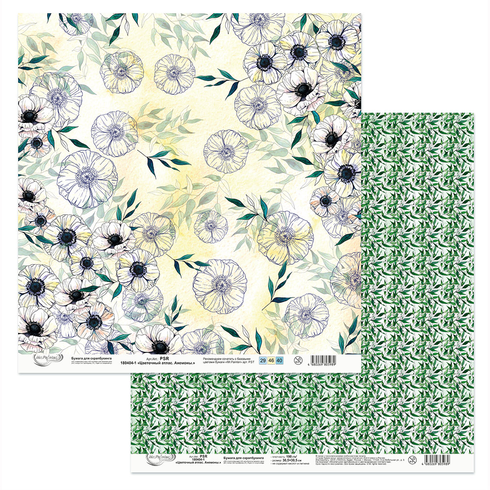 Бумага для скрапбукинга MrPainter "Цветочный атлас. Анемоны" (PSR180404-1)