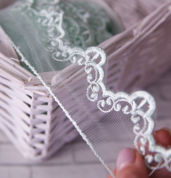 Кружево на сетке 5 см "Ажурный завиток", цвет мятный зелёный