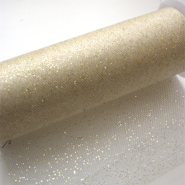 Тюль-сетка 15 см, цвет кремовый с блёстками