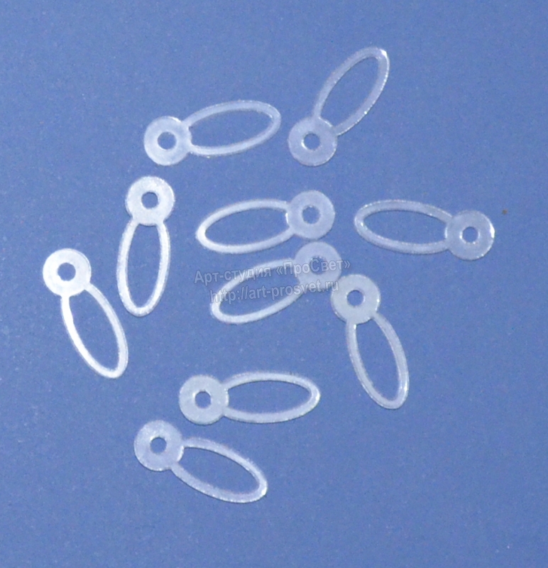 Размер: 20х7 мм. Диаметр отверстия: 2 мм. Материал: прозрачный акрил толщиной 1,5мм. В наборе 10 шт.