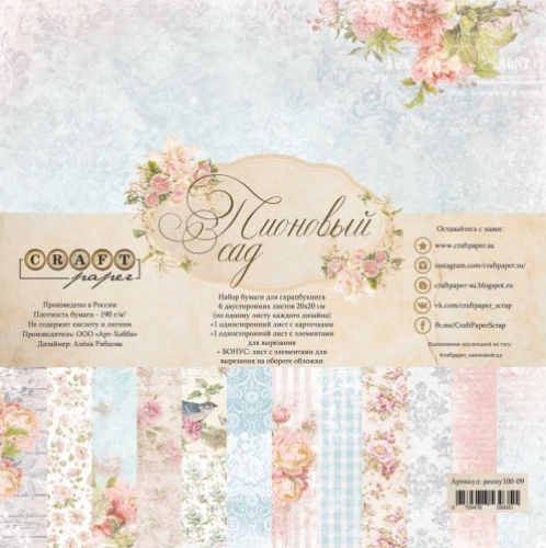Набор бумаги 20 х 20 CraftPaper "Пионовый сад"