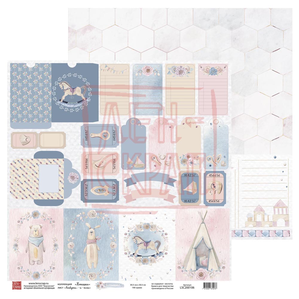 Бумага двусторонняя ЛенСкрап "Потешки" Конверты и теги (LSC18)