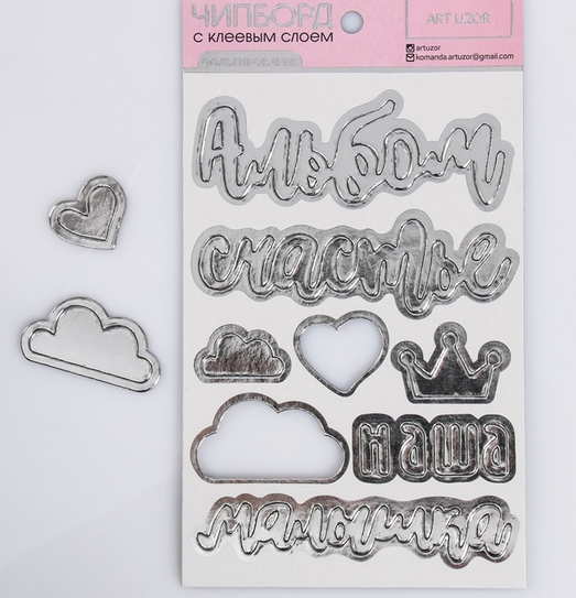 Размер упаковки 12 × 21 см. Чипборд на клеевой основе