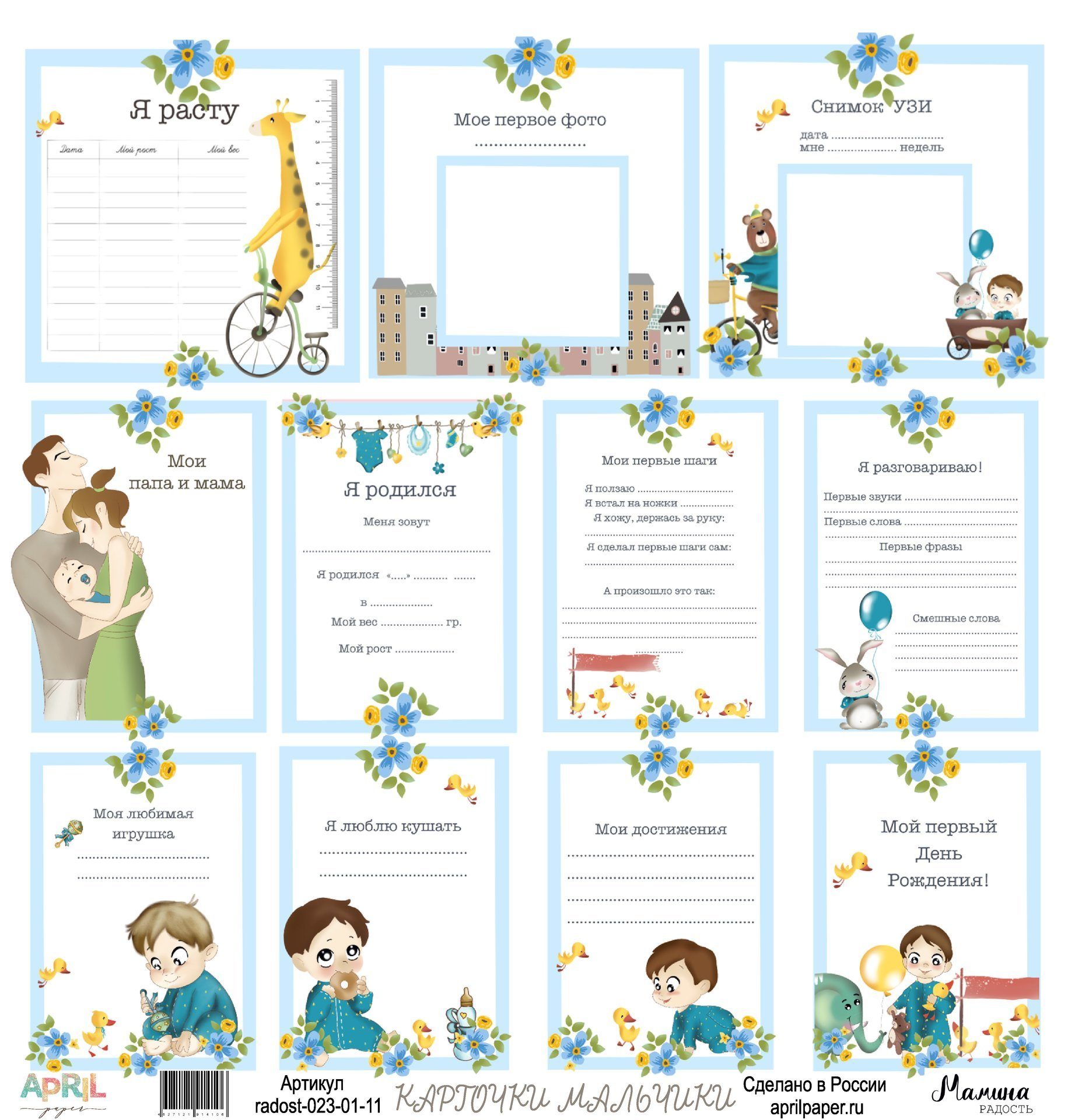 Бумага APRIL paper "Мамина радость. МАЛЬЧИКИ" Карточки (APR148)