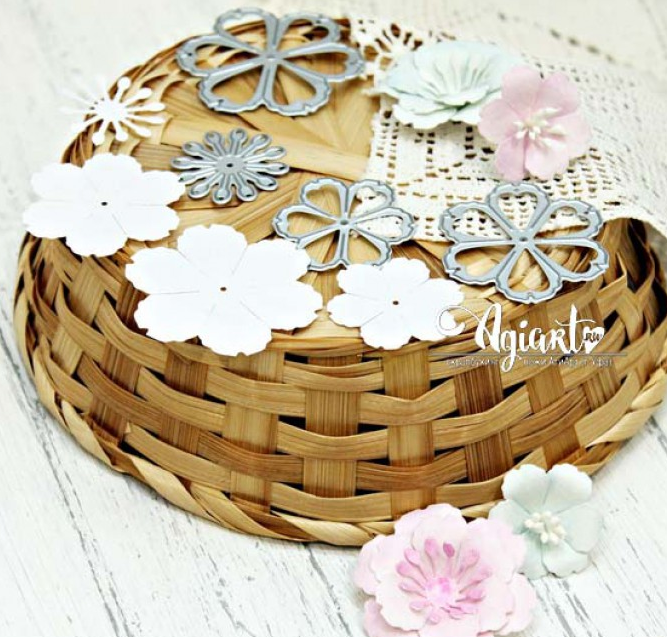 В наборе 4 ножа. Размеры вырубки: 45*49 mm., 40*43 mm., 33*31 mm., 29*29 mm -тычинки