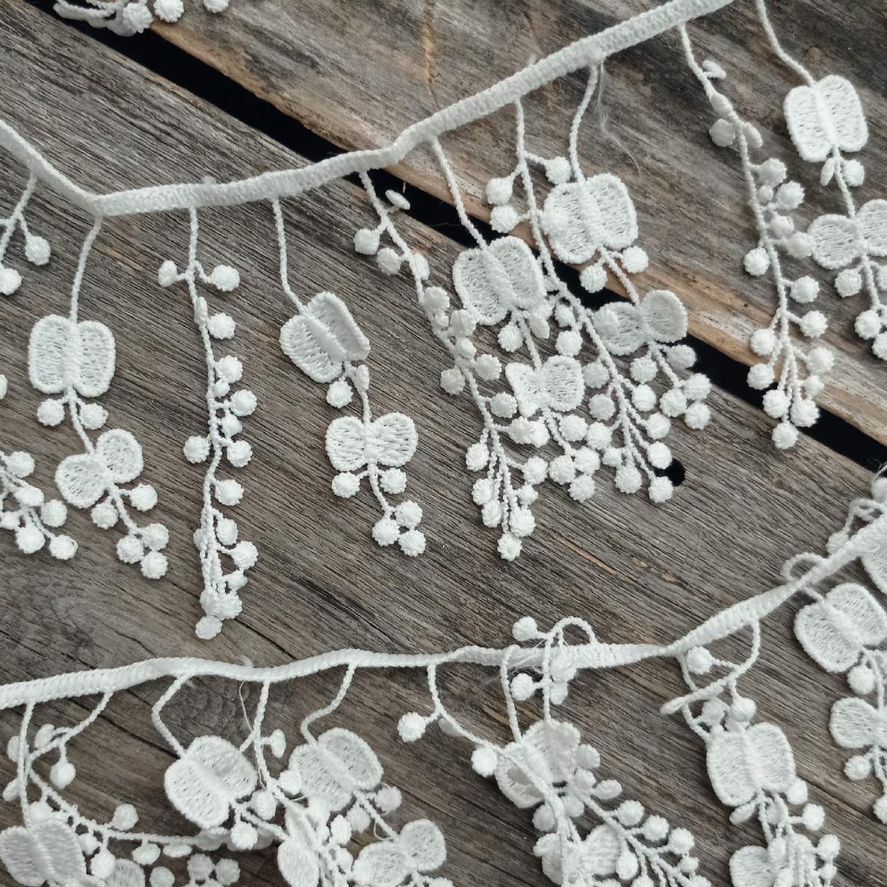 Кружево 7 см "Подвески с листиками эвкалипта" цвет белый