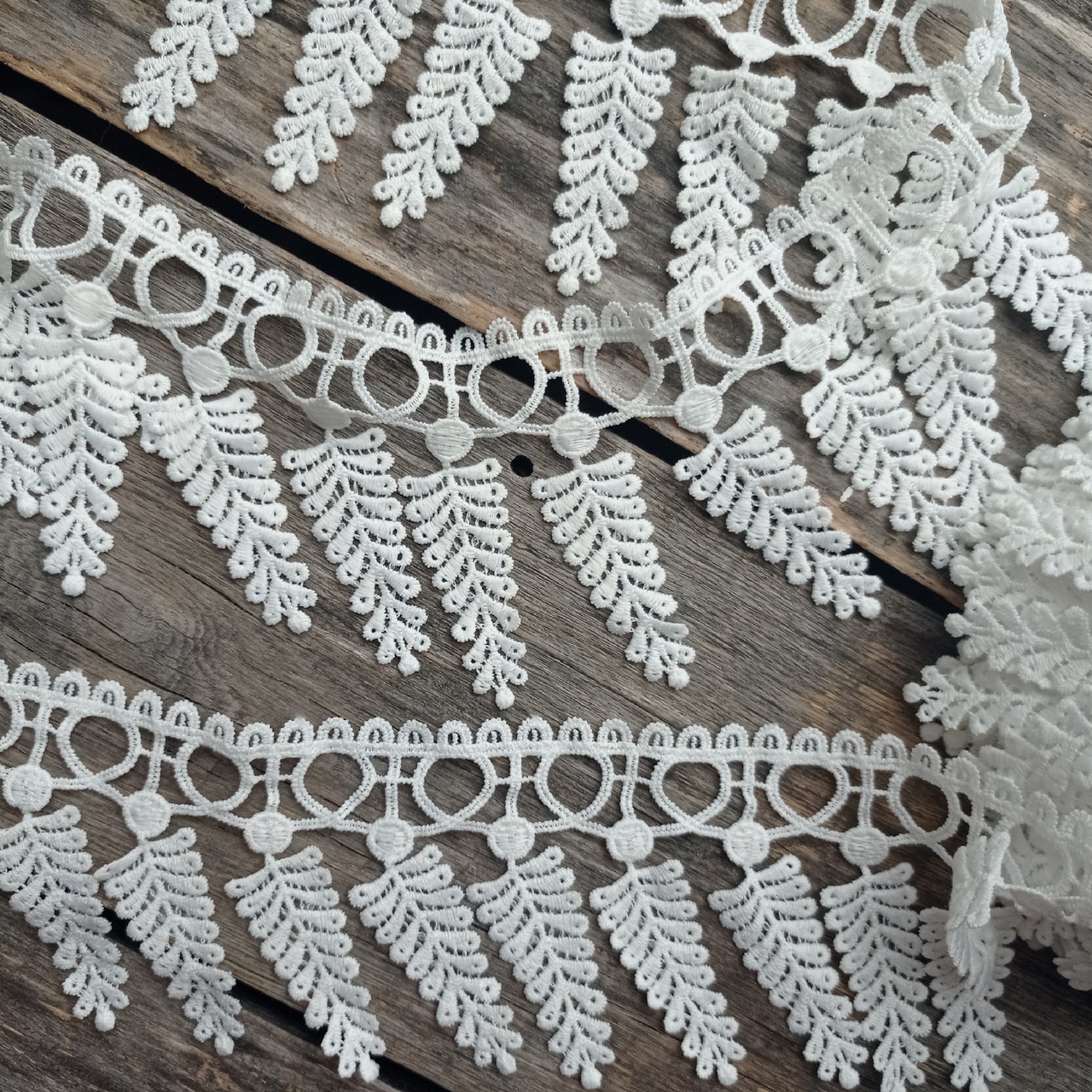 Кружево 9 см "Вензель и подвеска-папоротник", цвет белый