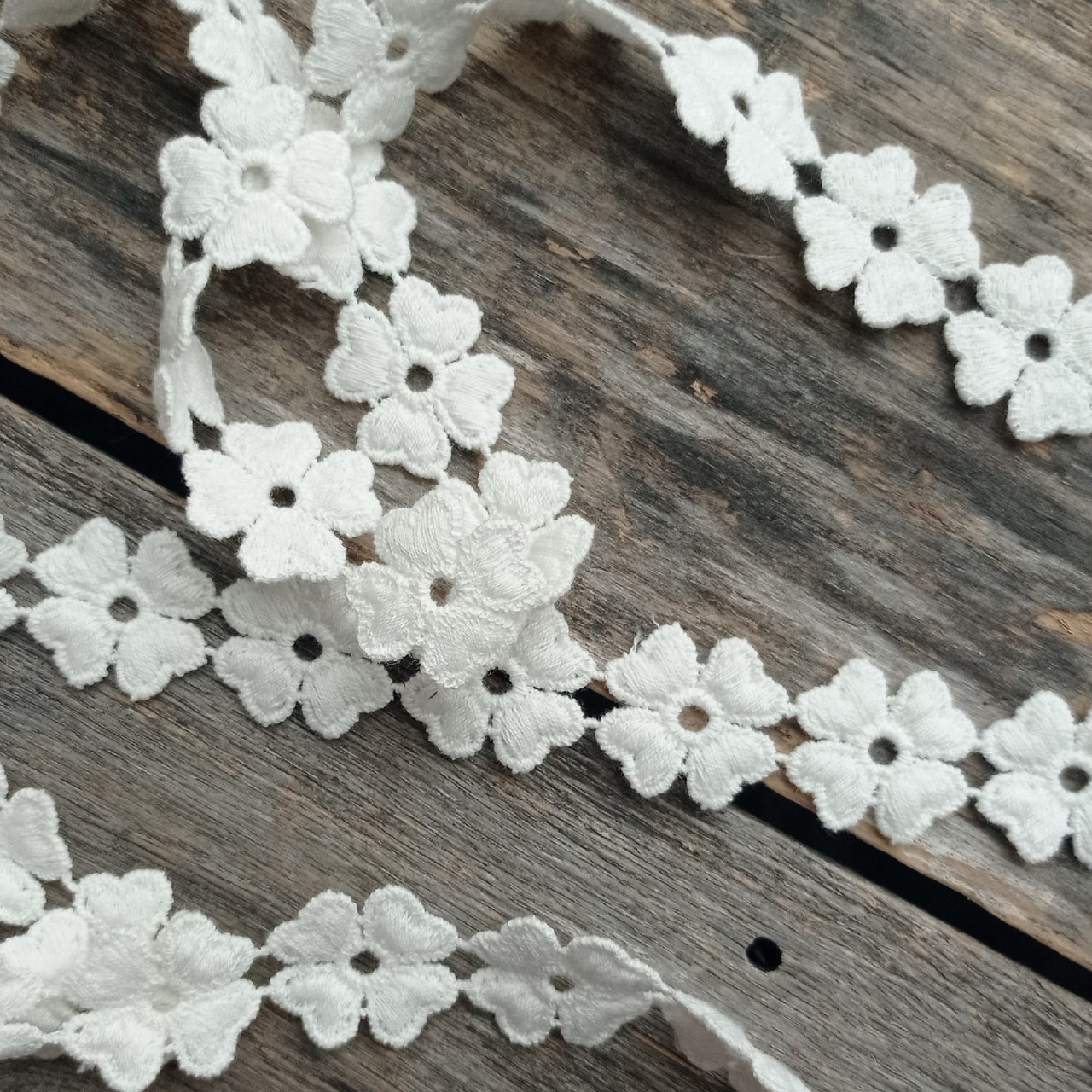 Кружево 2,5 см "Четырёхлистник с лепестками-сердечками" цвет белый
