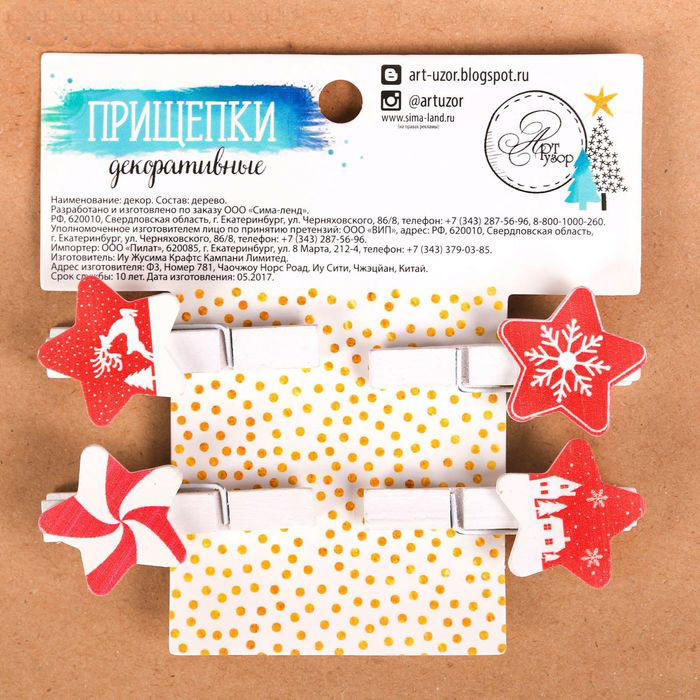 Набор деревянных прищепочек Артузор "Счастливый Новый Год"