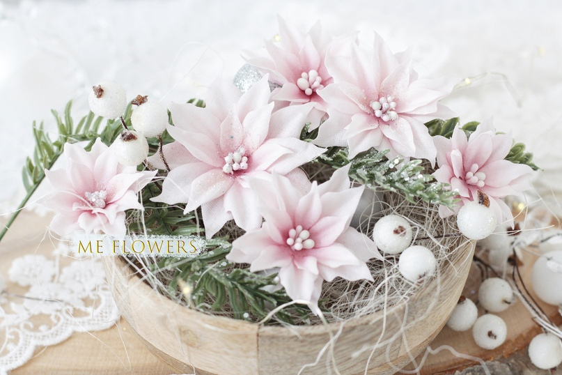 Набор тканевых пуансетий ME Flowers "Снежный пунш"